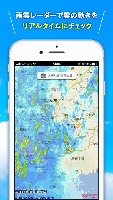 レジャーに出かける前には「雨雲レーダー」でスポット情報を調べてみましょう!日本全国の各スポットが調べられるので、ゲリラ豪雨などが発生した時には活用してみましょう!