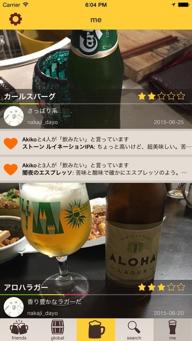 ビールを飲んだ記録を写真、味・香りと共に残せます。