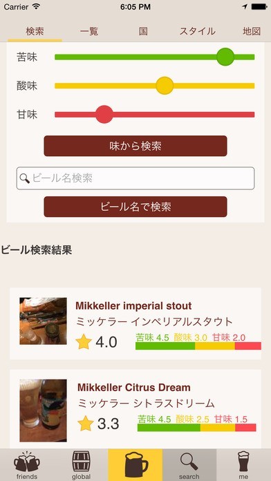 ・国、種類からビールを探し、その評価やレビューを見ることが出来ます。