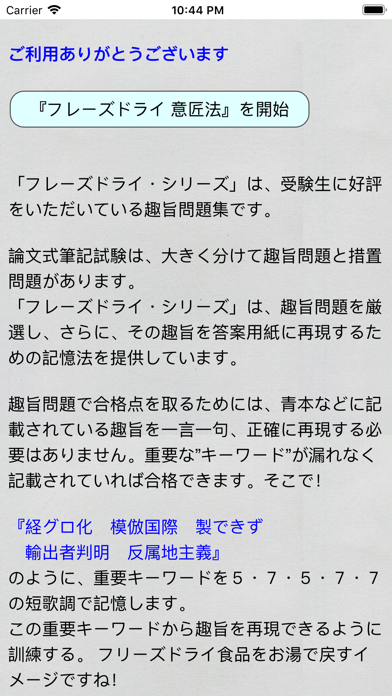 App Storeより引用「フレーズドライ・シリーズ」は、受験生に好評をいただいている趣旨問題集です。