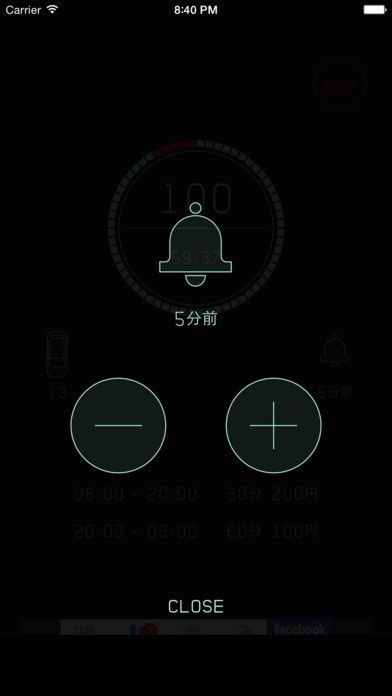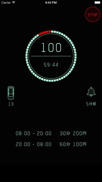 『駐車料金』アプリは、設定された駐車料金から現在の料金、次の料金加算までの残り時間などを確認できます。
