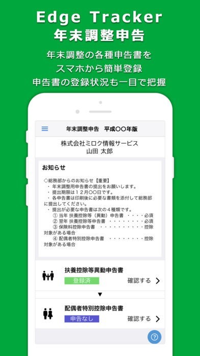 登録された申告書データは、MJSERPシステム「給与大将」へ連携できるため、管理部門は二重入力の手間や申告書の事前配付などの事務作業を大幅に削減することができます。