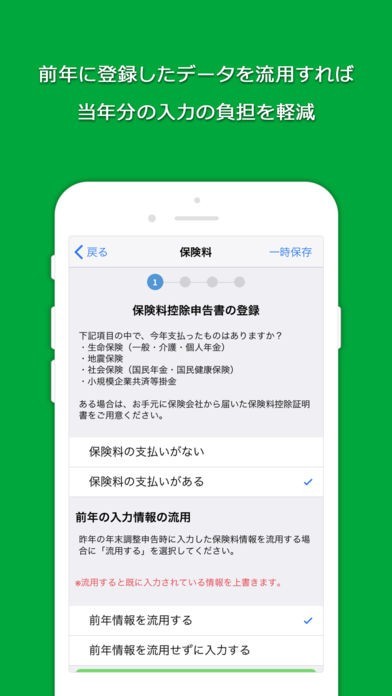 2年目からは前年の申告書データをボタン一つで流用することができます。
