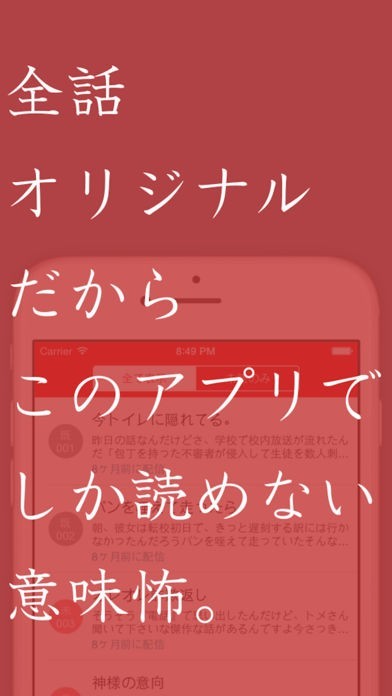 アプリオリジナルの怖い話を友だち同士で読んでみましょう。文章に隠された意味や恐怖が分かりやすくなります。友だちと一緒に予測すれば、より楽しくアプリを利用できるはずです。
