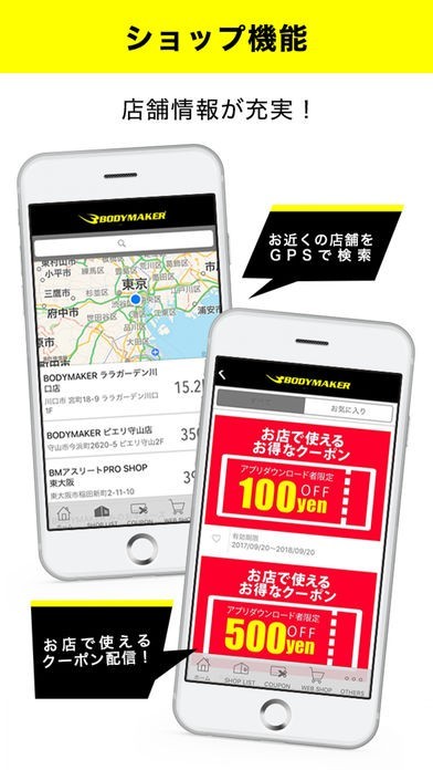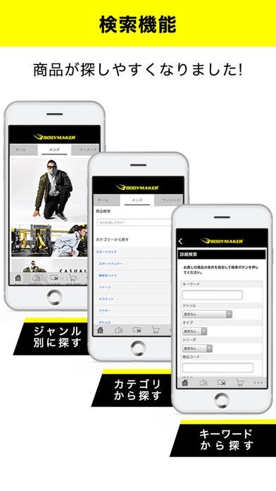 「BODYMAKER」が公式配信するアプリとして、最新ニュースや新着情報が充実しています。気になるアイテムはカタログで手軽にチェックできる他、ショップ検索機能で近隣の店舗を発見できます。