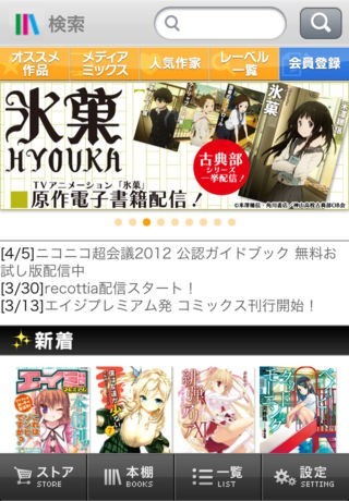 閲覧だけ可能なBOOK WALKERのスマートフォンアプリの旧バージョン