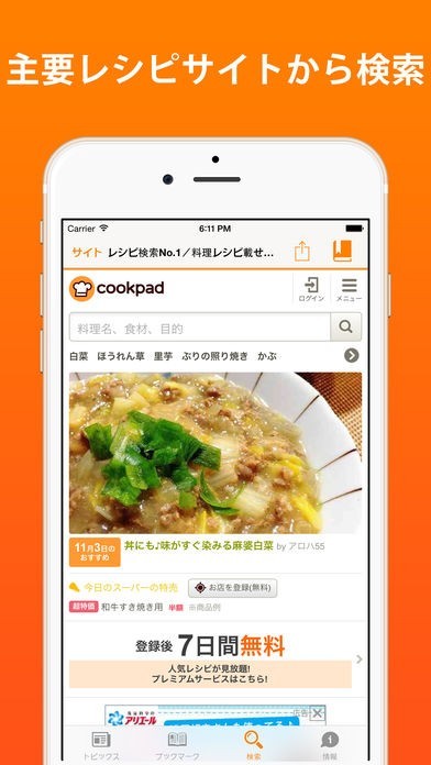 料理レシピをブックマーク for クックパッド [クックマーク]のスクリーンショット