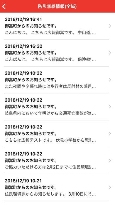 御嵩町防災行政情報のスクリーンショット