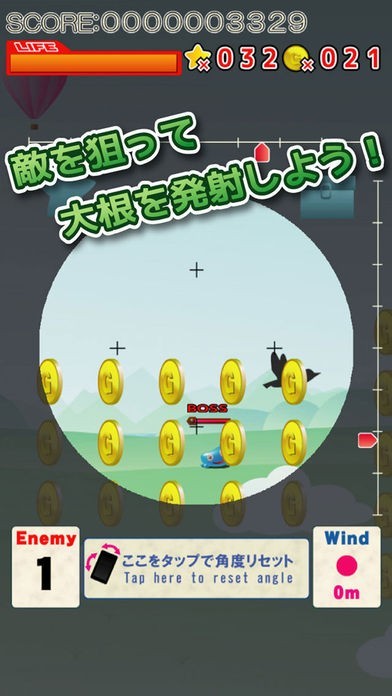 大砲を用いて、大根を飛ばすことを楽しめるゲームが、正しい大根の飛ばし方、というアプリになります。タップで発射されますが、さらにはスマホを傾けていくことによって、大砲の角度が決められるようになります。微調整を繰り返して、ここだ、というところでタップしてみましょう。それで大根が飛んでいくことになります。中心部に当たることによってクリティカルダメージとなります。敵がどんどん近づいてくるので早く、正確に連射をすることが勝負の鍵を握っています。