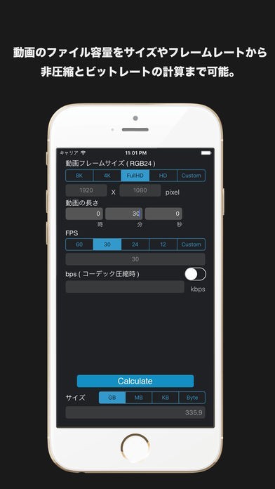 「動画容量計算 Video Size Calculator」スペック・仕様