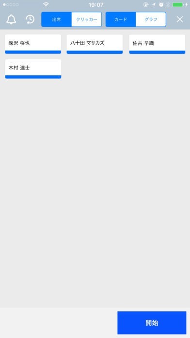 GPSとBluetoothを使って参加者を検出し、出欠ステータスを一覧表示します。