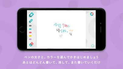 家族でひとつのキャンパスを共有して、指で直接イラストやテキストを描いて共有できます。