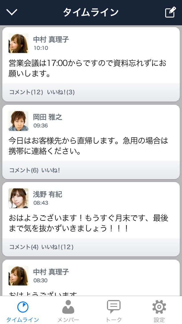 タイムライン形式でメンバーの投稿をシェア!