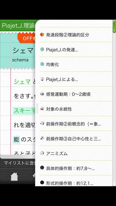 忘れがちな用語をリスト化できるマイリスト機能が便利