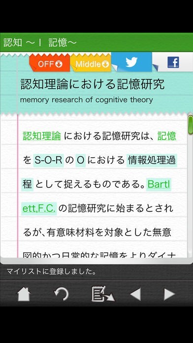 ワードを探せる検索機能や苦手克服のためのマイリスト機能、細かな用語の確認には暗記モードを使えます。。関連用語にジャンプできる機能も搭載しており、より効率的に勉強ができます。