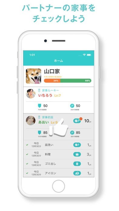 あなたが行なった家事を記録をすれば、パートナーに通知が届きます。
