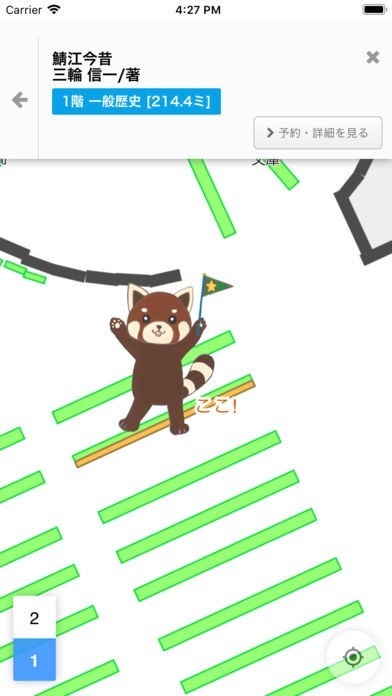 また蔵書検索すると、検索した本の場所をマップで案内します。
