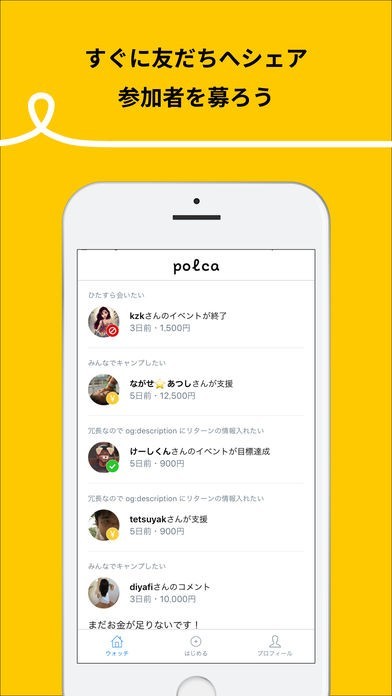 「polca」は、友達や家族、同僚など知り合い同士でお金を集めることが出来るフレンドファンディングアプリになります。スマートフォンを使って旅行や飲み会、パーティーなどのイベントに必要なお金を参加者から集めることが出来るようになるアプリとなっていて、タイムラインでだれが支払ったかを確認することが出来ます。