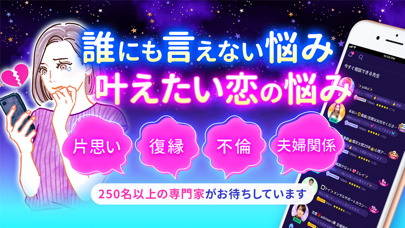 App Storeより引用【復縁・不倫・片思いなど恋愛に関するお悩みを解決するアプリ】