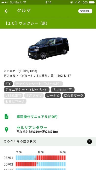 地図でステーションの場所がわかるだけでなく、指定した時間の空き状況が常に反映されるため、目的の時間に借りれるクルマが探しやすくなりました。