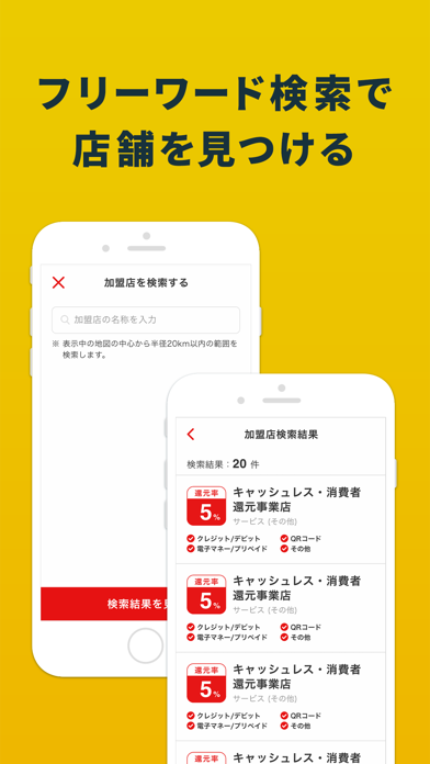 ポイント還元対象店舗検索アプリのスクリーンショット