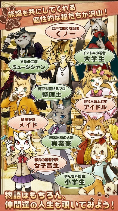 放置系ゲーム「不思議のニャパン」では、個性的な猫キャラクターと一緒に不思議な国を楽しむことができます。仲間となった猫達を「ニャパン」各地に派遣するだけで、おみやげの獲得が可能。400種類を越えるおみやげが用意されており、やり込み要素が充実しているのも嬉しいポイントとなっています。ミュージシャンや女子高生、アイドルといった多彩なキャラクターが仲間として登場。すべてのキャラクターを仲間に加えてみてはいかがでしょうか。また、ゲーム進行によって奥深いストーリーも読むことができます。平日は通勤通学の隙間時間に放置で遊び、休日はゆっくりとストーリーを楽しむといった使い方もできるゲームになっています。