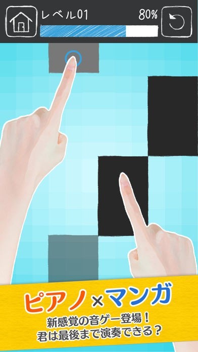 画面の上部分から流れてくる黒色のブロックを指でタップすることで演奏することができます。今までピアノに触れたことがない方であってもすぐにやり方を覚えることができます。