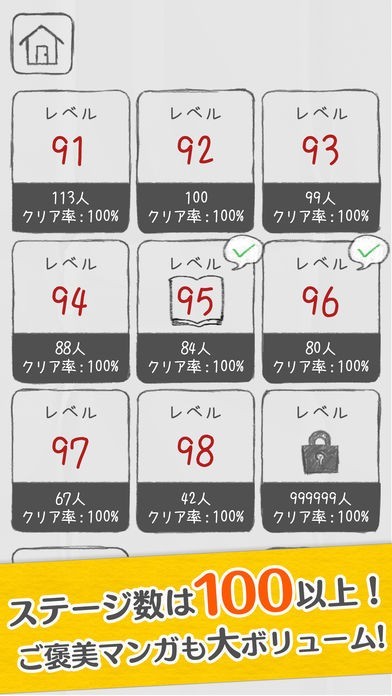 ステージをクリアすると、マンガを読むことができます。ゲームを進めていくうちにストーリーが進行するようになっているので、コンプリート目指して頑張り続けることができます。