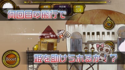 ロボットが搭乗する大砲をタップすれば、ロボを発射することができます。ロボの装備によって飛距離に変動があり、より高級な装備を積んでいればさらに記録を伸ばすことができます。