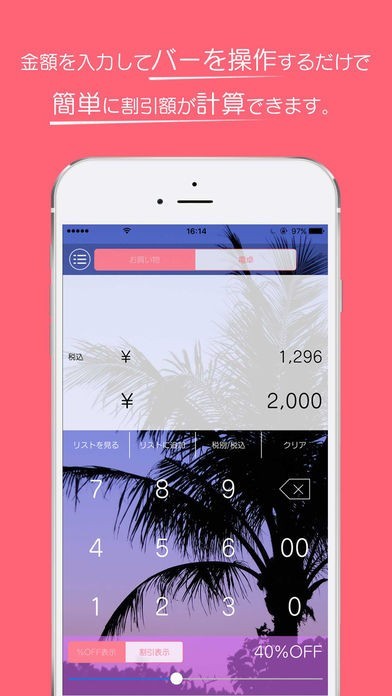 かわいい電卓!割引、税込み計算、買い物に便利なお洒落無料電卓~Calc wear(カルクウェアー)~のスクリーンショット