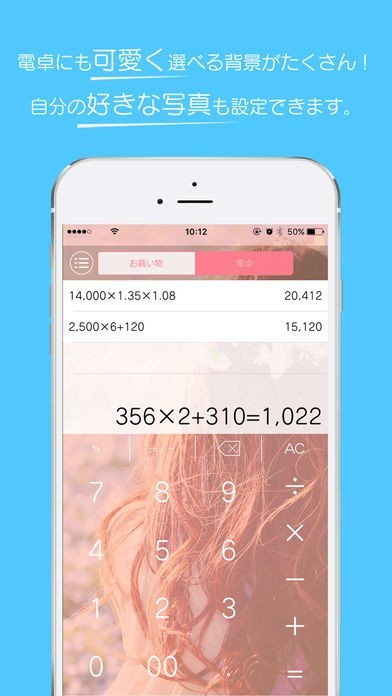 買い物の時の税計算、食事の際の割り勘の計算などに電卓アプリを使っているという方結構いると思います。でも、電卓アプリって何だが地味だと感じたことはないですか? このアプリは、背景デザインをオシャレに変更することができます。時に頭が痛くなるお金の計算が、ちょっぴり明るくなりそうです。 もちろん、機能も充実していて、「買い物モード」と「電卓モード」と機能別で使えるようになっています。 「買い物モード」では、買いたい物の金額を入れていけば、リストで表示されその合計金額も自動で計算してくれるので、予算内での買い物した時は便利ですよ。 「電卓モード」では通常電卓として使え、計算した履歴も計算式から残ります。もう一度確認したい時にはありがたい機能ですね。