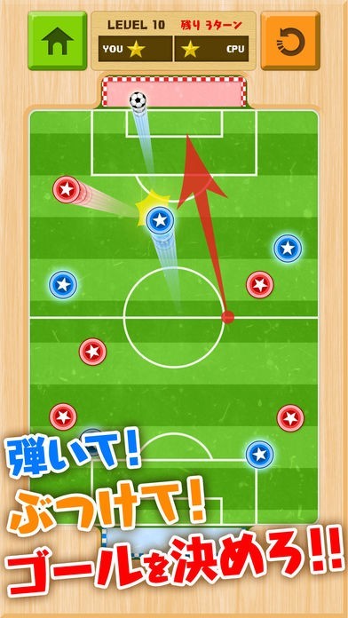 引いて弾いてぶつけてゴールを決めるシンプルなサッカーゲーム!