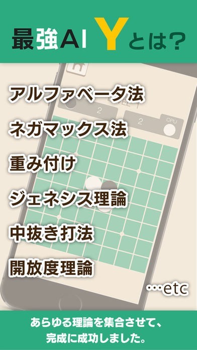 徐々に強くなっていくコンピューターとのリバーシ勝負をスマートフォンで楽しむことができるゲームアプリが「リバーシ−最強思考エンジン「Y」搭載−#人類VS人工知能(AI)勝つのはどっちだ!?」です。三つのリバーシ攻略理論をかけ合わせることで完成された思考エンジンが搭載されていて、1から100までのレベルでコンピューターと勝負することができるようになっているので、自分の限界までリバーシを楽しむことができるようになっています。