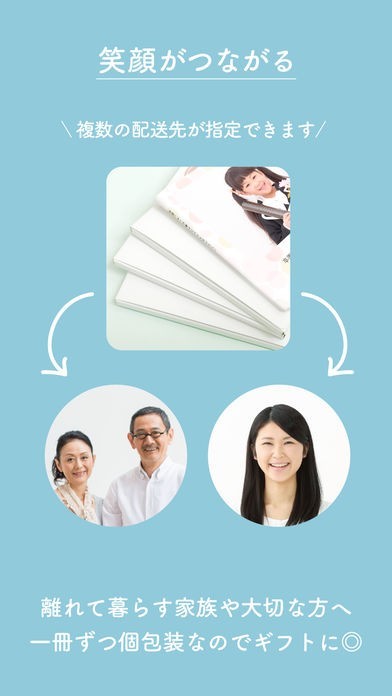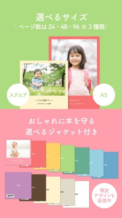 このアプリを使うことによって、スマートフォンに入っている写真から簡単にフォトブックを作ることを可能にします。 選べるジャケットの色は12色もよういされていたり、ページ数も3種類用意されていることからイメージ通りの作品を作り出してくれるでしょう。 よって、ターゲットはお子さんがいるお父さん、お母さんが当てはまって、親戚の方々やおじいちゃん、おばあちゃんに送ることで喜んでもらえることは間違いありません。 注文をしてから一週間程度で到着するというようなスピード感があることから、時間がないような場合や、プレゼントとしていつまでに贈りたいというような場合にも使ったりすることも簡単に行なえます。