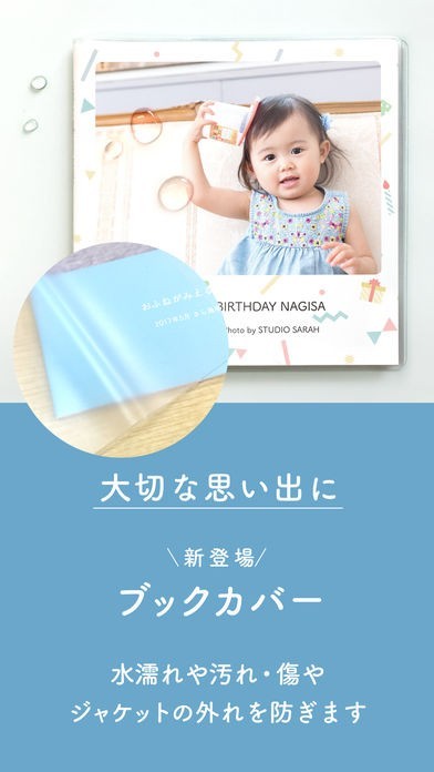 スマホから選んだ写真をフォトブックにしてくれるサービスが利用できるアプリです。フォトブックに入れたい写真を選ぶと、最初に選んだ写真を表紙にして自動で最適なレイアウトが提案されます。ここでコメントを記入することもでき、書体も選択可能です。後は必要事項を入力して注文するだけです。1冊250円から利用できます。 ジャケットは12色と限定デザインが用意されています。耐久性が高い素材が使われ、高画質で印刷されるので思い出を鮮明に残せます。