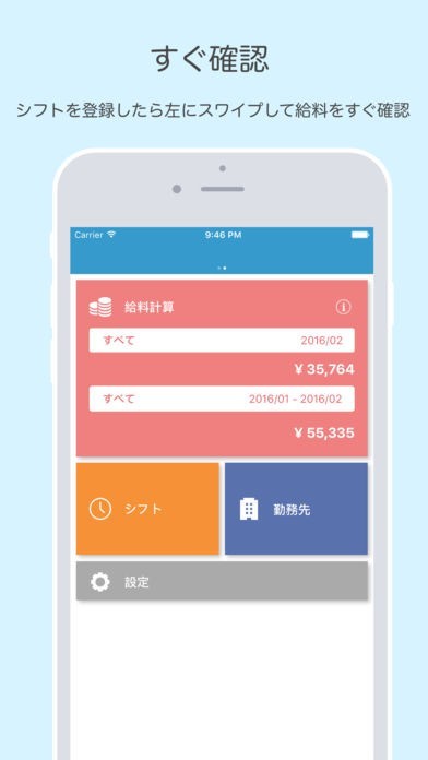 シフトをカレンダーに登録したら、左方向にスワイプするだけで、すぐに給料を確認できます。
