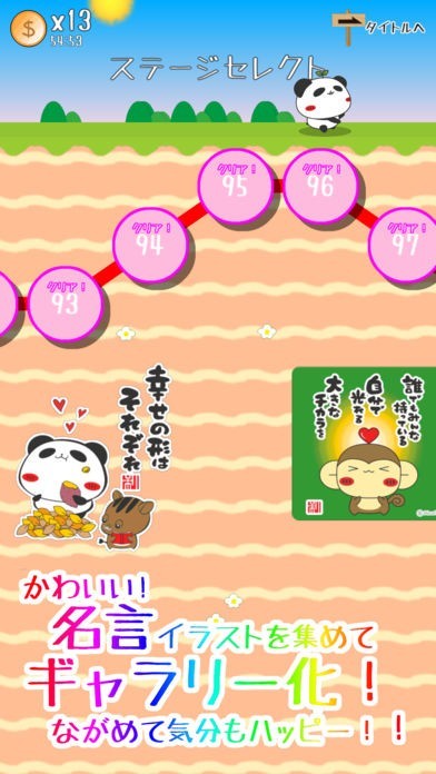 進めていくともらえるハッピーイラスト・名言集!