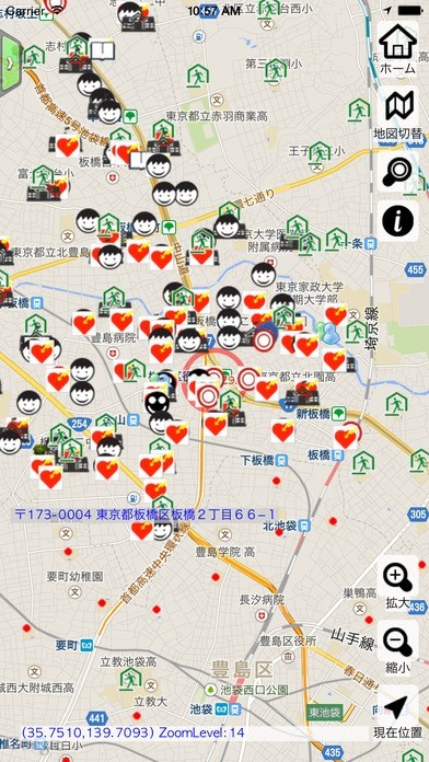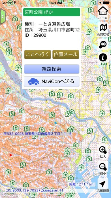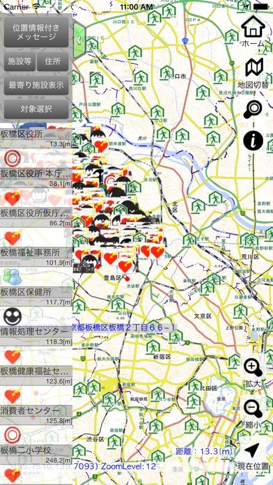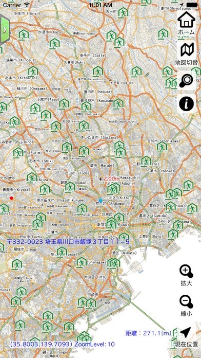 GPSを利用して最寄りの避難所や避難場所などを確認することができます。