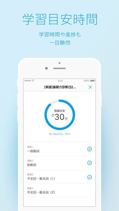 学習の目安時間を設定できて自分のペースで学習できる