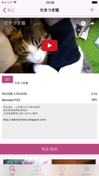 検索キーワードを保存することができるので、文字入力ができないお子様でも好きな動画の検索結果を開くことができます。