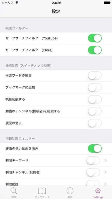 不適切な動画やお子様に視聴させたくない動画をフィルターするために以下のフィルター機能を備えています。