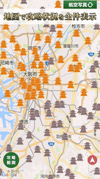App Storeより引用『ニッポン城めぐり』は、日本100名城・続日本100名城をはじめとする、主に戦国時代に日本全国に実在した3,000の城をGPS位置情報を使ってめぐるスタンプラリー(位置ゲーム)。お城や歴史、戦国時代好きな方から初心者まで、皆さんに楽しんで頂けるアプリです。