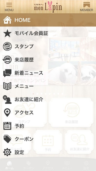 札幌市うさぎカフェ併設【うさぎ専門店モンラパン】公式アプリのスクリーンショット