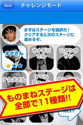 チャレンジモード機能では11種類のステージを用意!ステージクリアで爆笑ものまねボイスをゲットしよう!