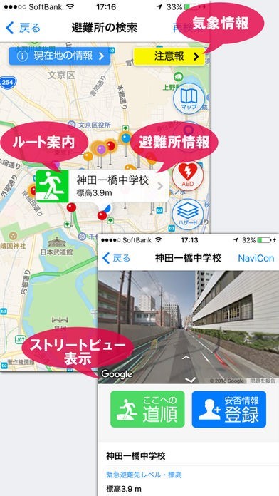 最寄りの避難所がすぐにわかる!ルート案内だけでなく危険なエリアや関連情報の受信も可能