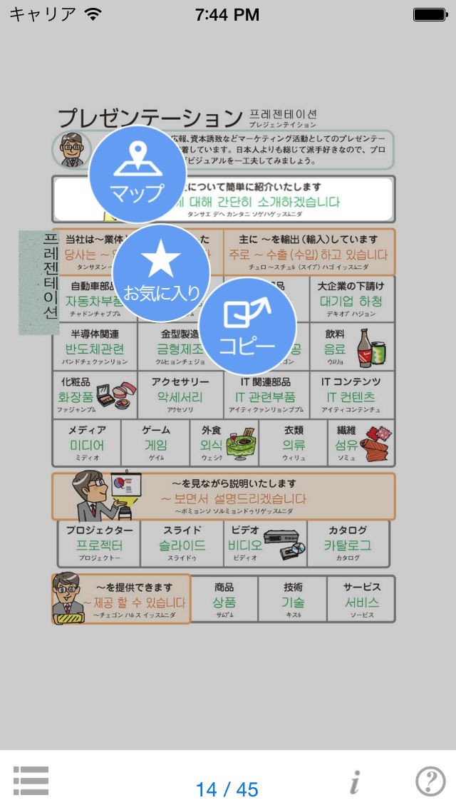 指さし会話帳からビジネス韓国語のアプリ版が登場!旅行中やビジネス中に気になる単語やフレーズをタップして相手に見せるだけで、楽しく韓国語のコミュニケーションが取れます。