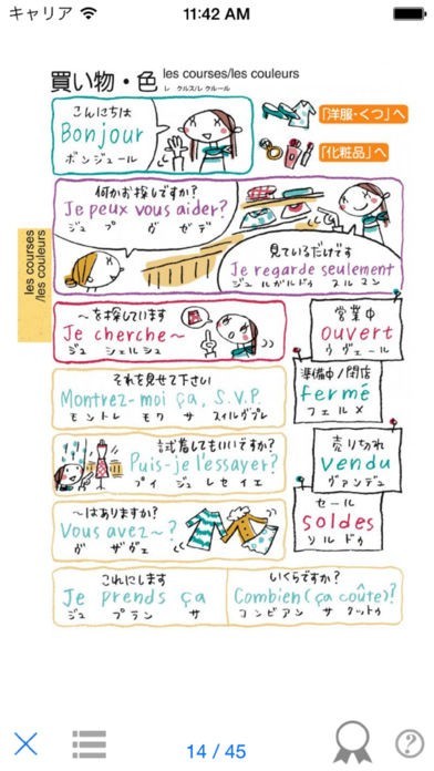 聞きたいフレーズをタッチすると音声が再生されるので、自力でフランス語を話せなくても会話が可能です。