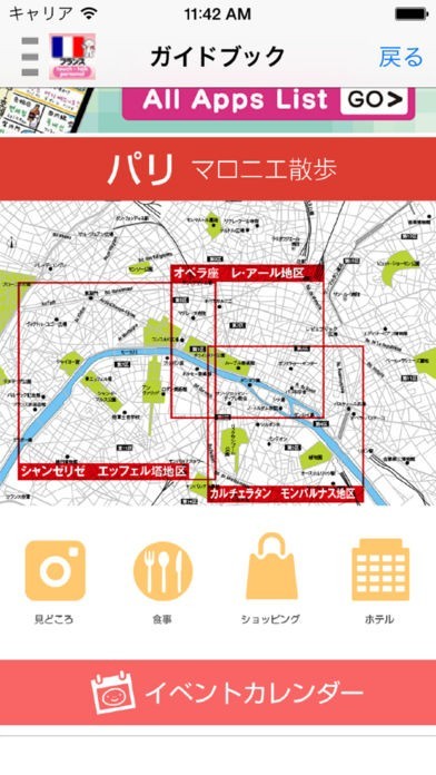 道案内や食事、買い物に使えるフレーズだけでなく、パリなど観光地の地図も載っていて、旅行前の準備でも使えます。