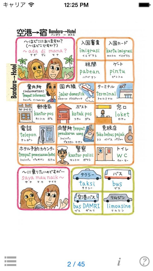イラストだから分かりやすい!インドネシア旅行アプリ
