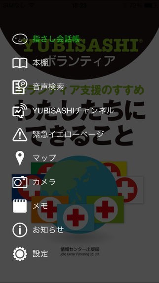 "ボランティア支援のすすめ わたしたちにできること"は、その名の通り復興支援や海外ボランティアを行う方を、サポートする目的で開発された会話ツールアプリとなっています。会話ツールである"ボランティア支援指さし"機能では、ネイティブの音声と共にイラストを掲載する事で、言葉の壁を越えた疎通を可能にしています。また、投薬や通院時に必要な用語を収録しており、よく使う単語はお気に入り登録しておく機能も備えています。さらには、マップやカメラ、メモ機能など、多彩な機能が充実しています。国境を越えてのボランティア活動を支援して、コミュニケーションをスムーズに行うのに有効なアプリとなっています。